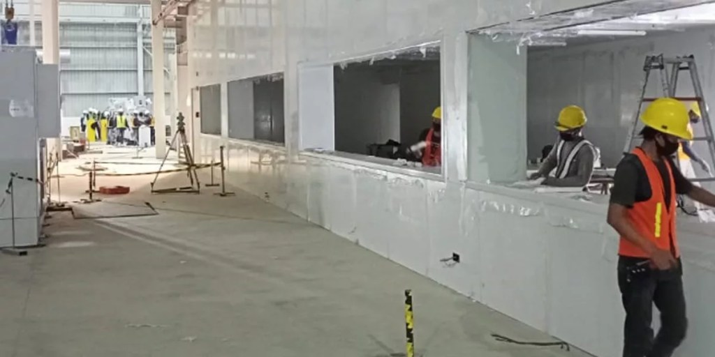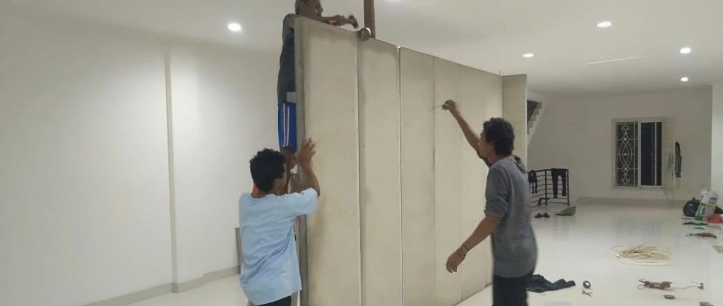 Sebuah bangunan dengan volume yang sama menggunakan partisi tiang hanya membutuhkan waktu 1 bulan untuk menyelesaikannya.